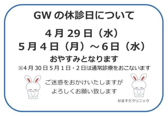 GWの休診日について